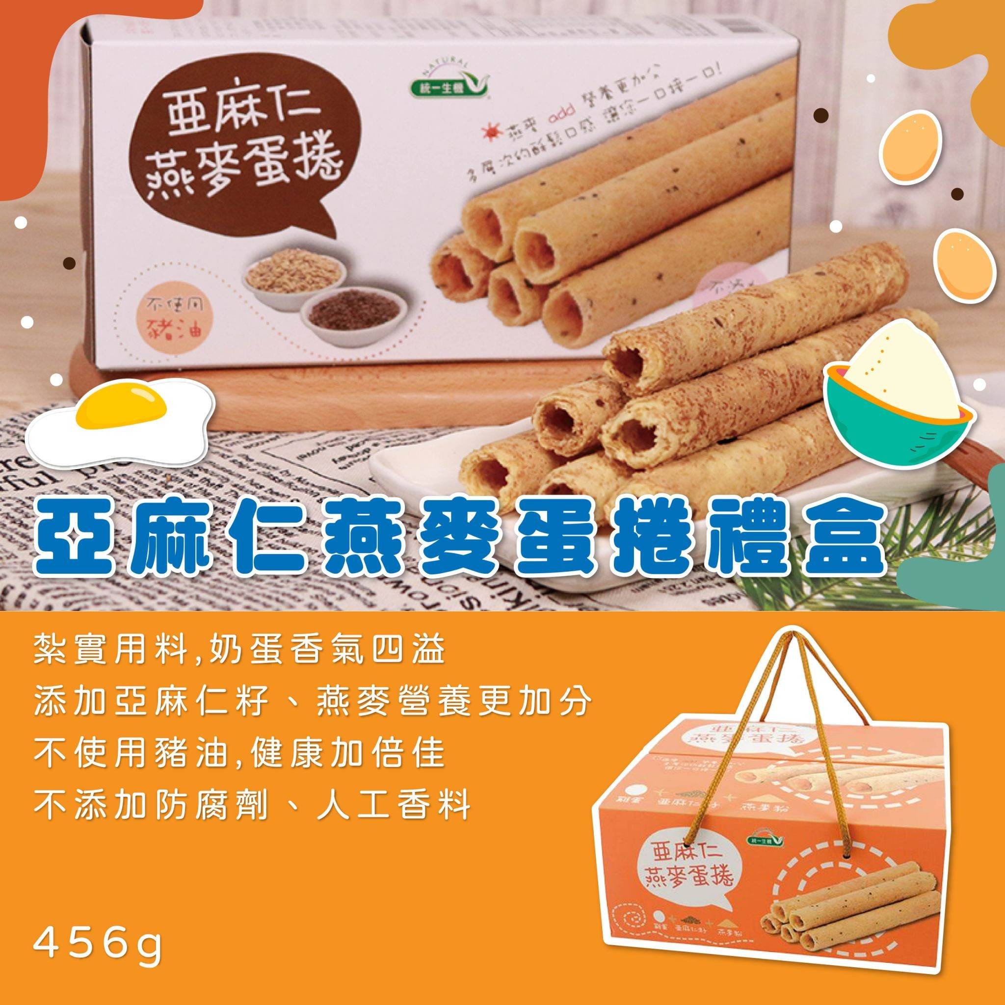 統一生機 亞麻仁燕麥蛋捲禮盒(456g/盒),絲米達整合行銷股份有限公司
